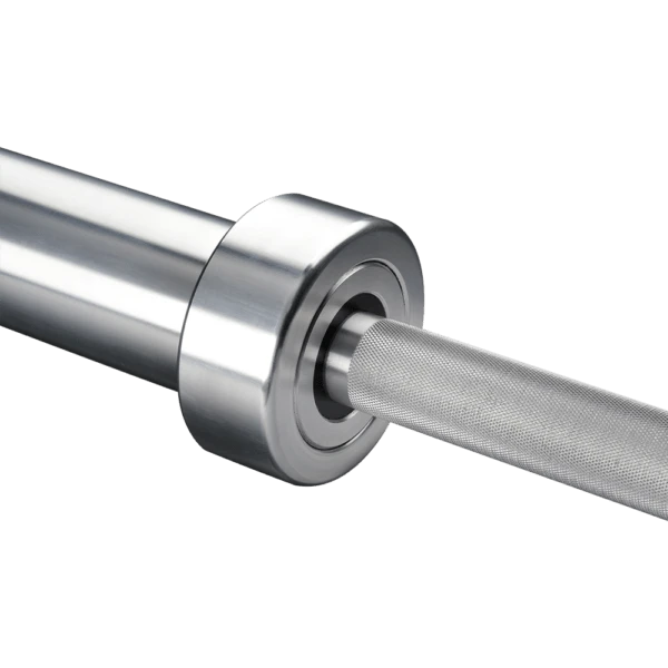 The bar shaft is made from precision straightened stainless steel. The strength of the shaft is tested with every shipment of raw material to ensure we have a consistent 190,000 PSI tensile strength. This attention to detail also allows for excellent whip and long-term performance of our bars. Stainless Steel offers superior corrosion resistance and can always be cleaned and repaired with no damage to the surface. Additionally, knurling set in stainless steel has a one-of-a-kind feeling that cannot be achieved with other finishes.