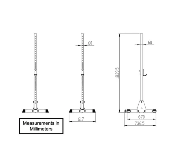 Weighing in at a beefy 73lbs for maximum stability, the squat stands 3.0 can be used in home gyms or commercial settings, for instance, weightlifting clubs.
