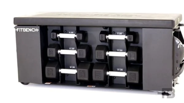 The Fitbench One is an all-in-one compact training station that functions as a storage system, dumbbell rack, bench, and plyo box providing users just about everything they would need to achieve a high intensity workout. With locking caster wheels, the Fitbench is both portable and extremely stable weighing a hefty 225 pounds.