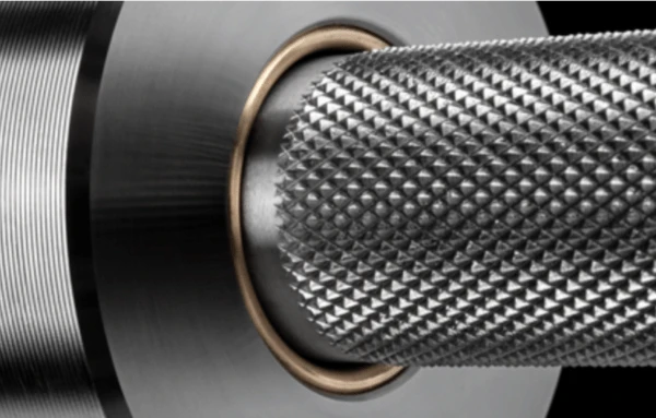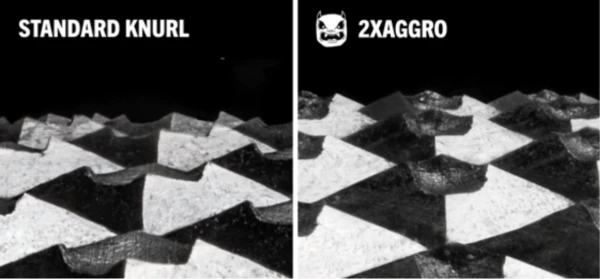 The Rogue Aggro Bar features 2x Aggro knurling and patented 3x Aggro knurling–the most aggressive knurling on a Rogue Bar yet.