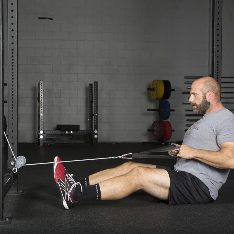 Spud Inc.’s light and portable Econo Pulley sets create an instant, customizable lat pulldown machine within your existing rack or rig—with a total load capacity of up to 550LB. These pulleys are made in the USA and are compatible with Rogue’s Monster Grip Triangle Attachment.