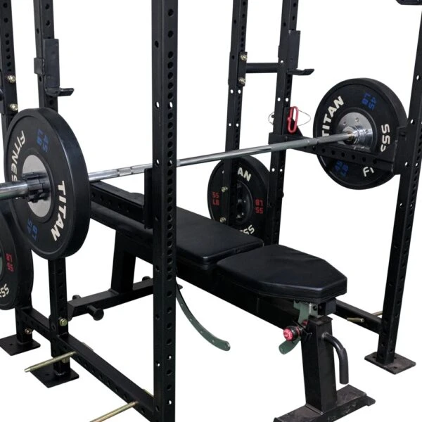 The Flip Down Safety Bars from Titan Fitness are constructed of 9 or 11 gauge steel and are designed to fit Power Racks.
